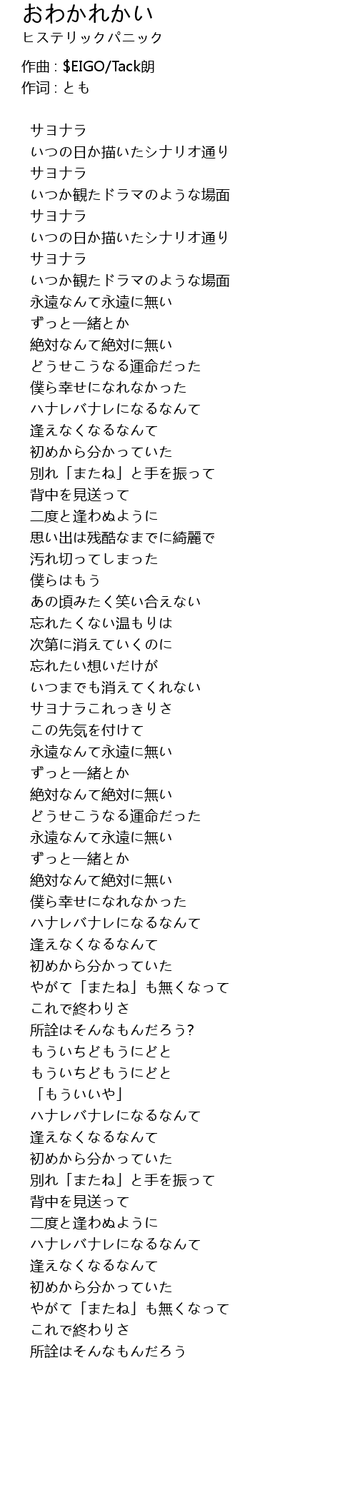 サヨナラこれっきりさ |