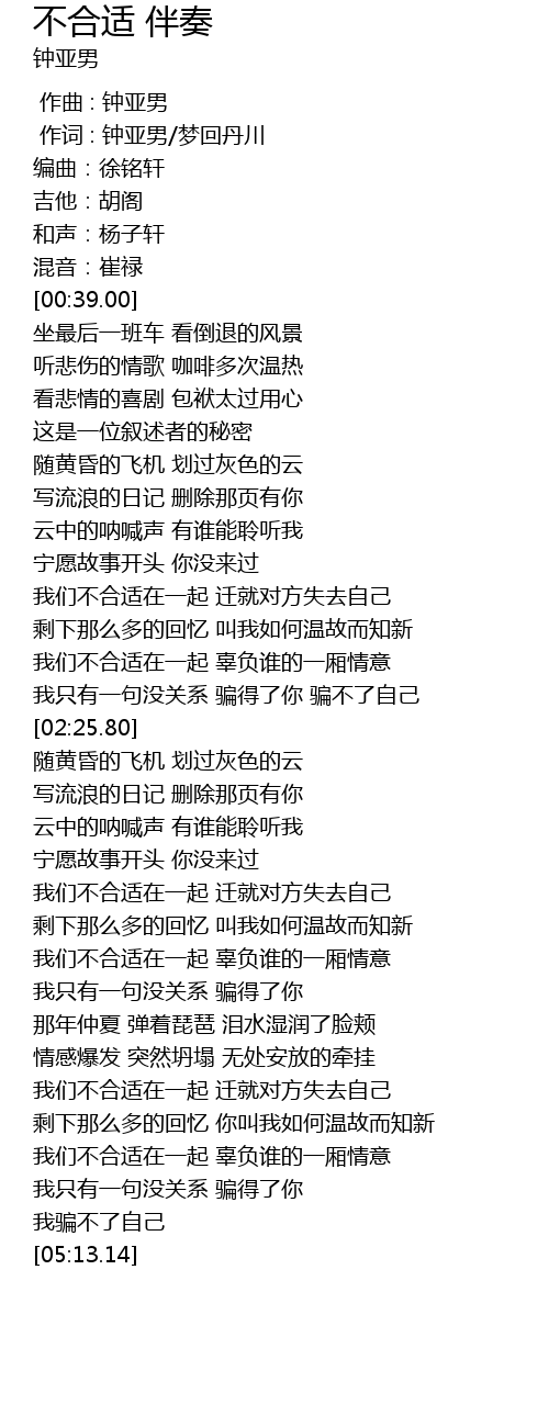 | [04:40.45] | 我们不合适在一起 辜负谁的一厢情意 |
