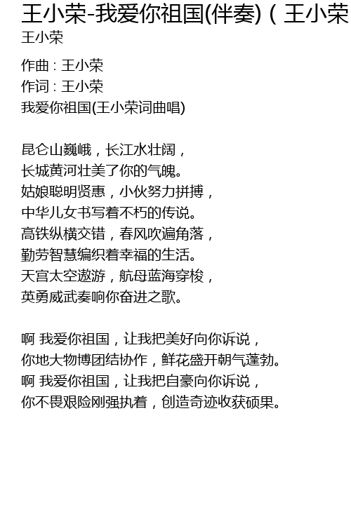 | wǒ ài nǐ zǔ guó wáng xiǎo róng cí qǔ chàng | |