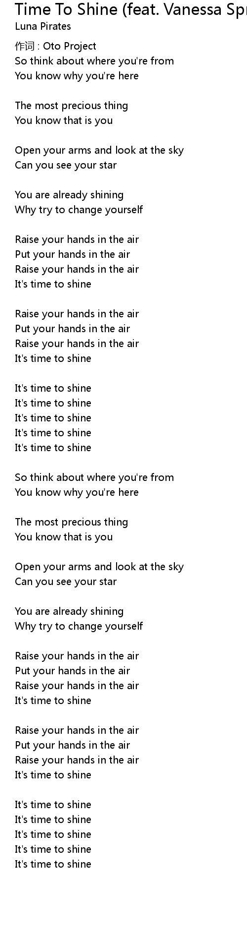 | Song | Time To Shine (feat. Vanessa Springs) (Album Edit) |