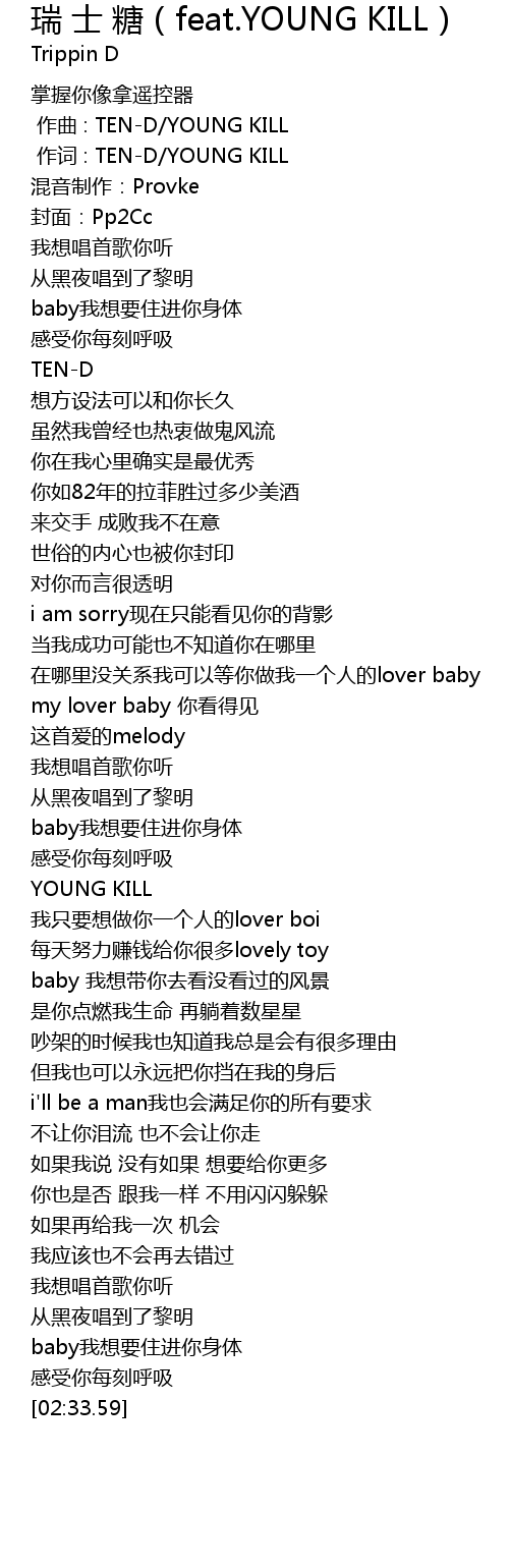| [00:00.000] | zuo qu : TEND YOUNG KILL |