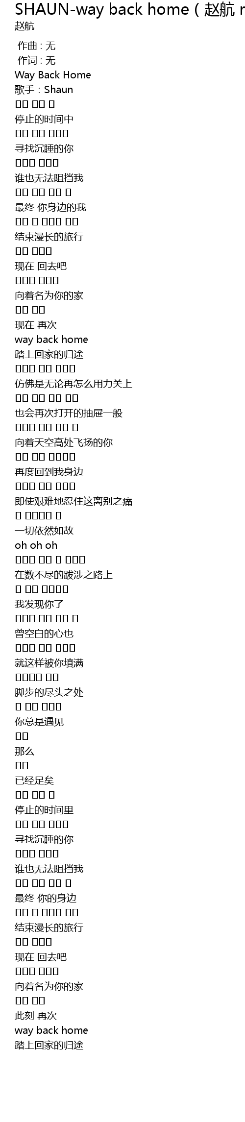 | Song | SHAUN-way back home(赵航 remix) |