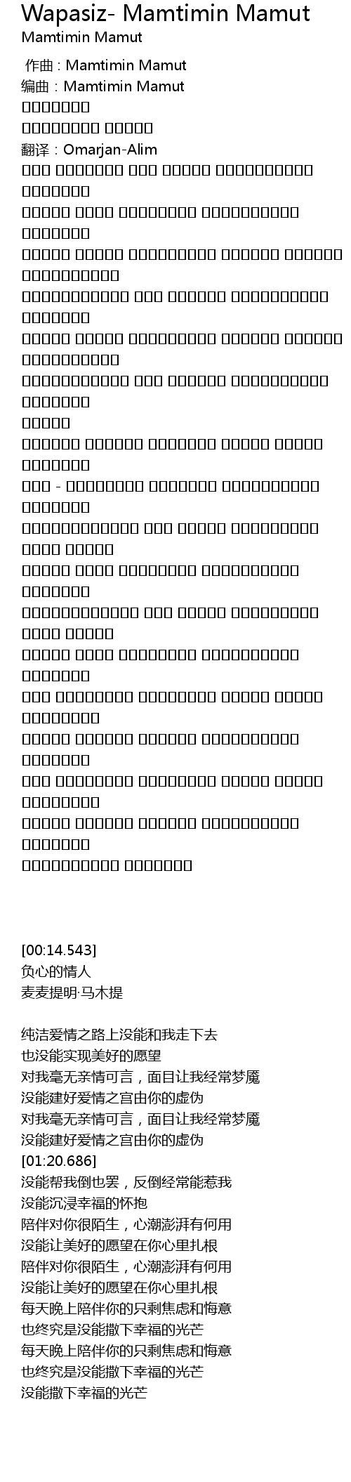 作曲 : Mamtimin Mamut |