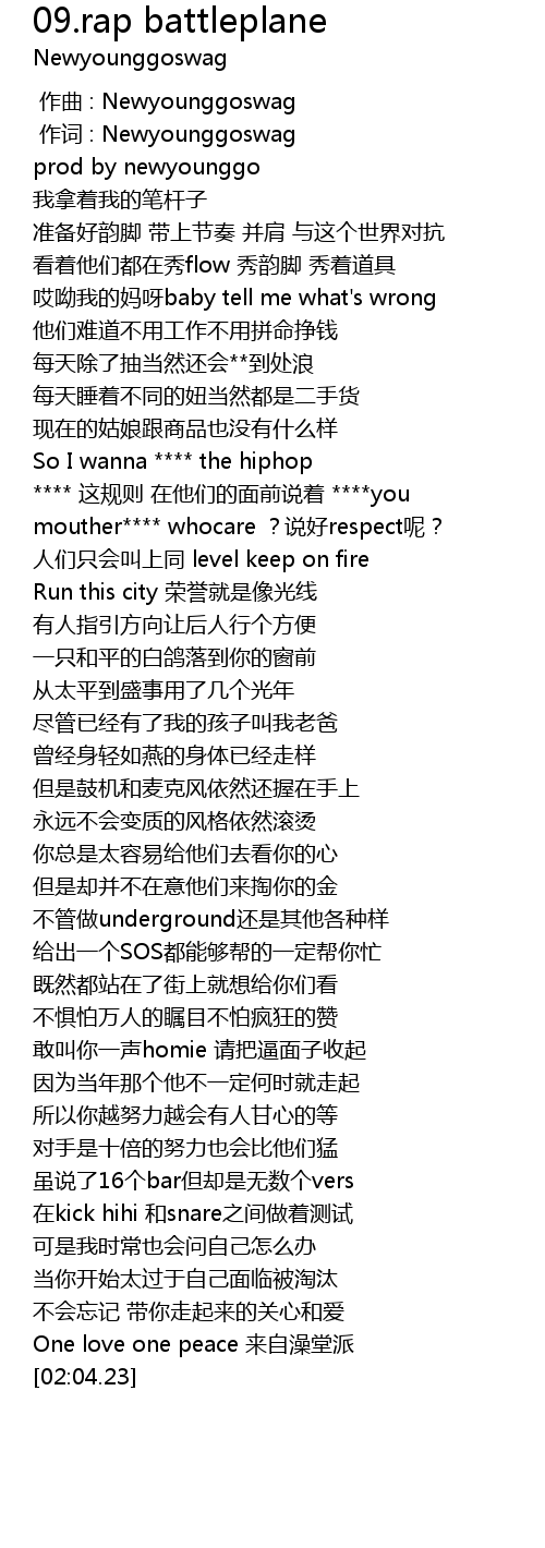 | [00:24.58] | 看着他们都在秀flow 秀韵脚 秀着道具 |