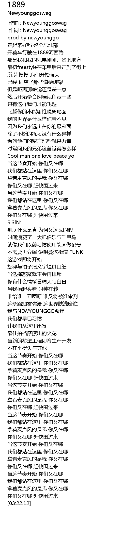 | [00:01.000] | 作词 : Newyounggoswag |