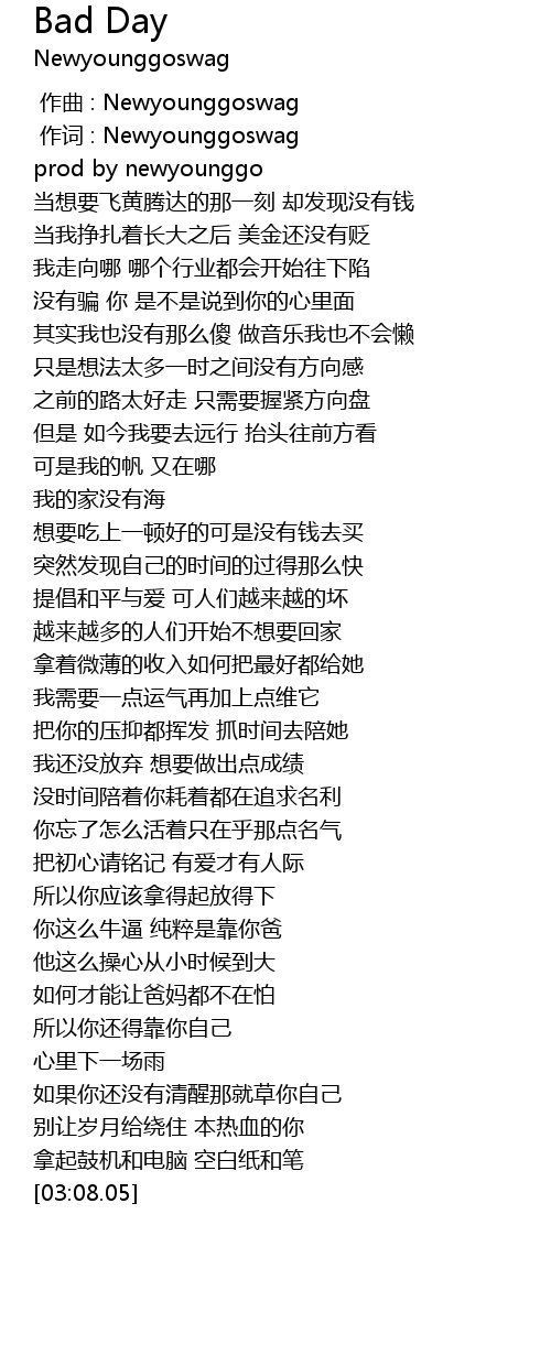 | [00:00.000] | zuo qu : Newyounggoswag |