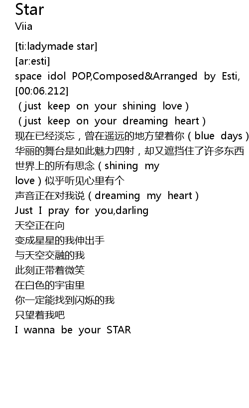 | [00:03.353] | space idol POP,Composed&Arranged by Esti, |