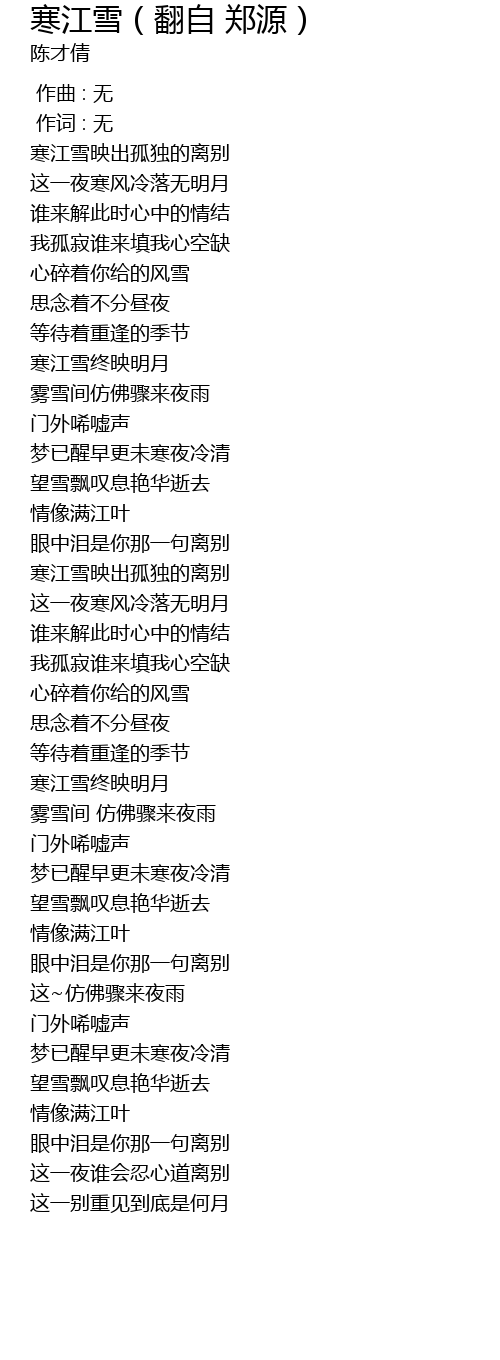 | [00:25.935] | 寒江雪映出孤独的离别 |