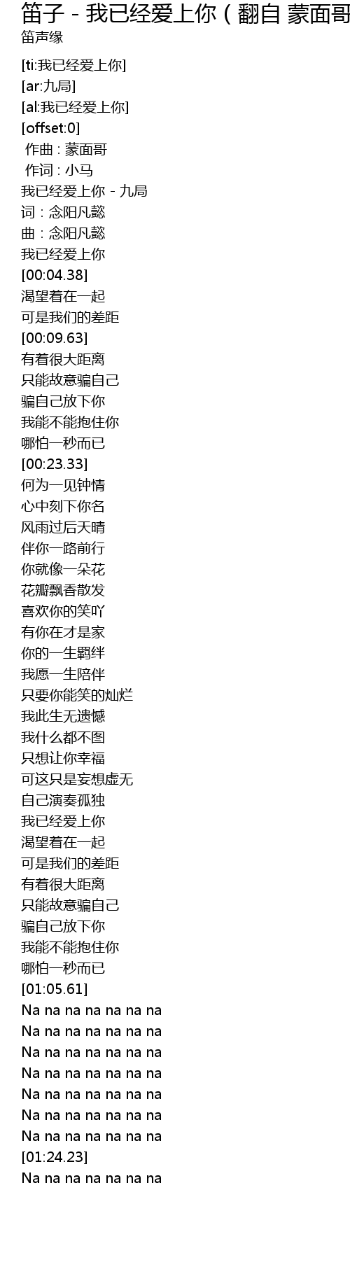 | [00:00.23] | 我已经爱上你 - 九局 |