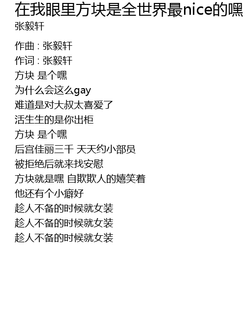 | Song | 在我眼里方块是全世界最nice的嘿(Demo) |