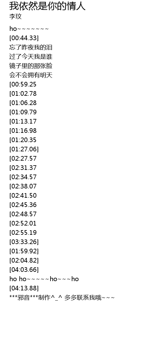 | [03:13.23][02:41.50][01:41.62] | 我依然是你的情人 |