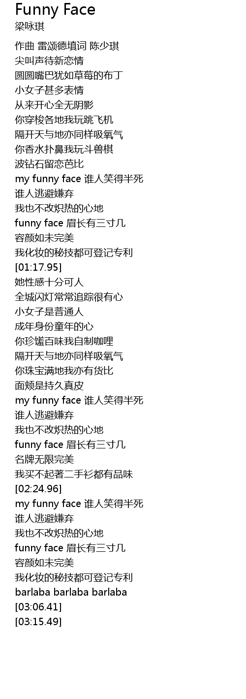| [02:15.11] | funny face méi zhǎng yǒu sān cùn jǐ |