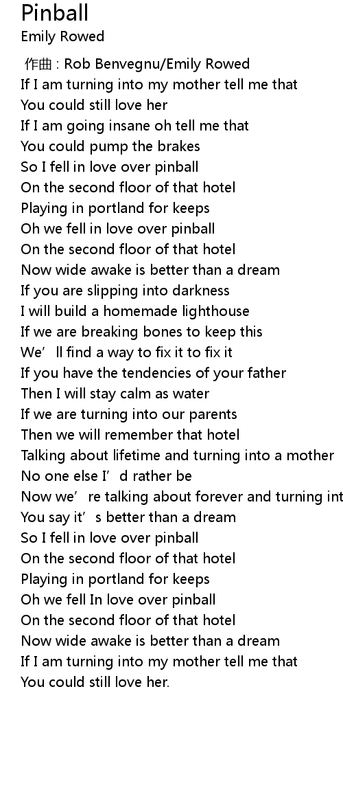 | [00:00.000] | zuo qu : Rob Benvegnu Emily Rowed |