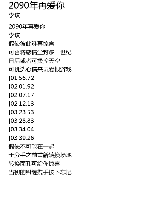 | [03:50.16][03:28.83][02:22.90][01:09.17] | 再见到你要到下一个世纪 |