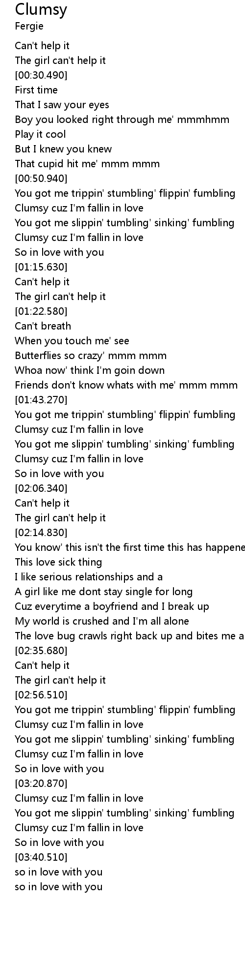 | [03:23.340] | Clumsy cuz I' m fallin in love |