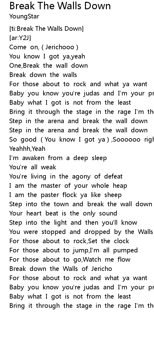 | [01:05.112] | You were stopped and dropped by the Walls of Jericho |