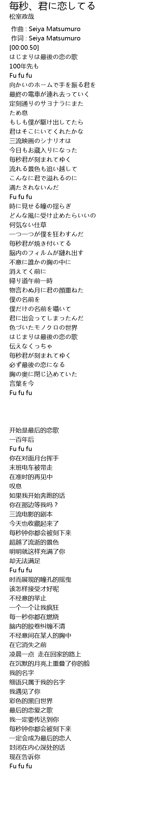 | [00:00.016] | zuo ci : Seiya Matsumuro |
