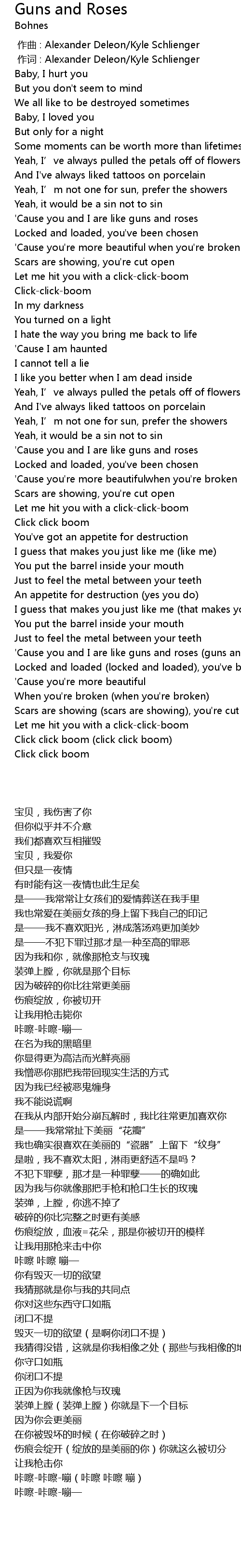 | [02:53.85] | ' Cause you and I are like guns and roses guns and roses |