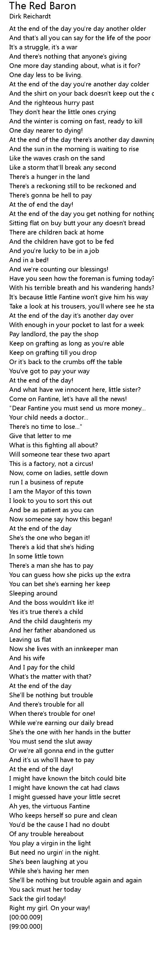 The Red Baron Lyrics