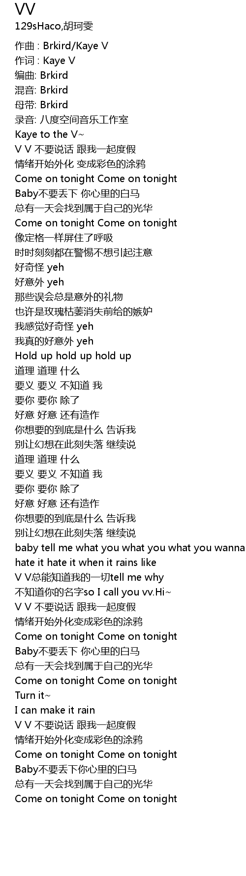 | 作词 : Kaye V | |