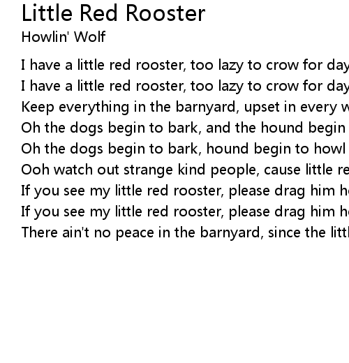 There ain't no peace in the barnyard, since the little red rooster been gone |
