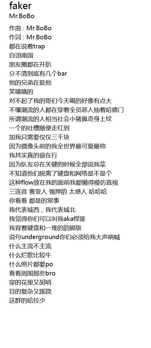 | 作词 : Mr.BoBo | |