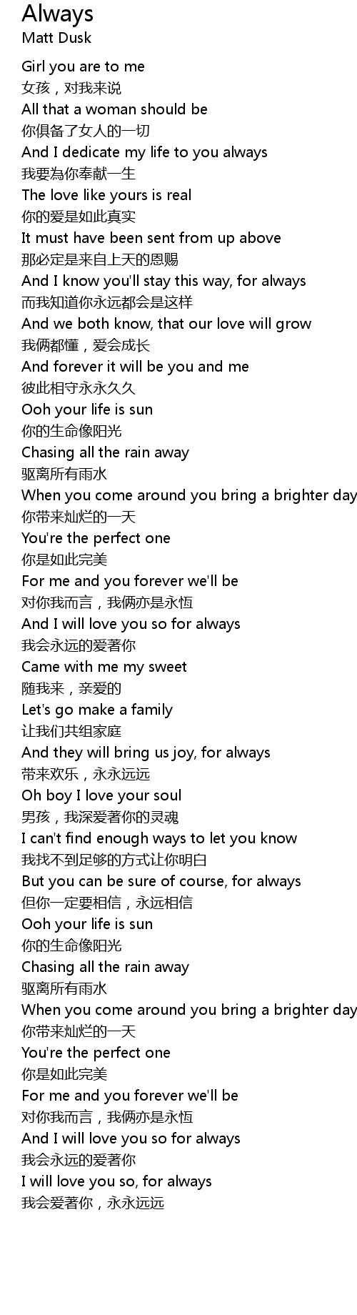| wǒ huì yǒng yuǎn de ài zhe nǐ | |