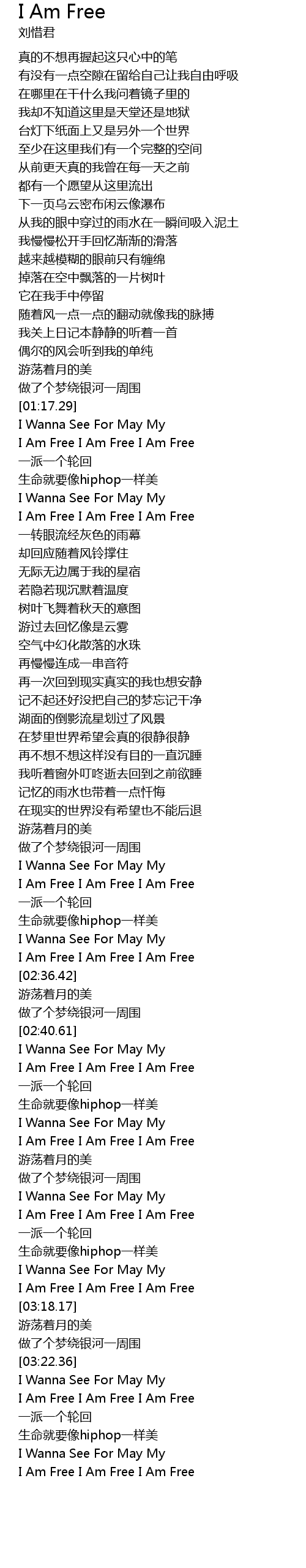 | [03:04.62] | I Am Free I Am Free I Am Free |