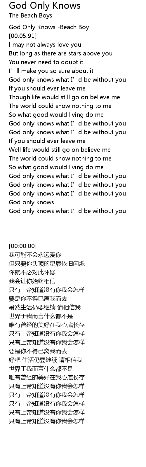 | [00:59.82] | God only knows what I' d be without you |