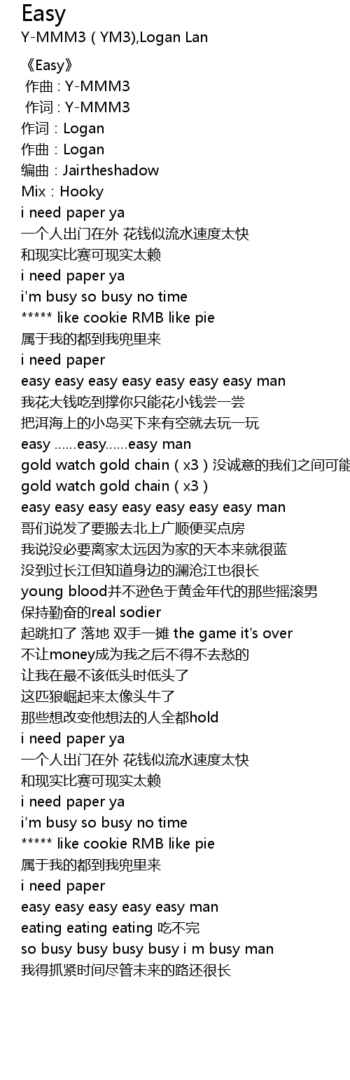 | [01:35.196] | easy easy easy easy easy easy easy man |