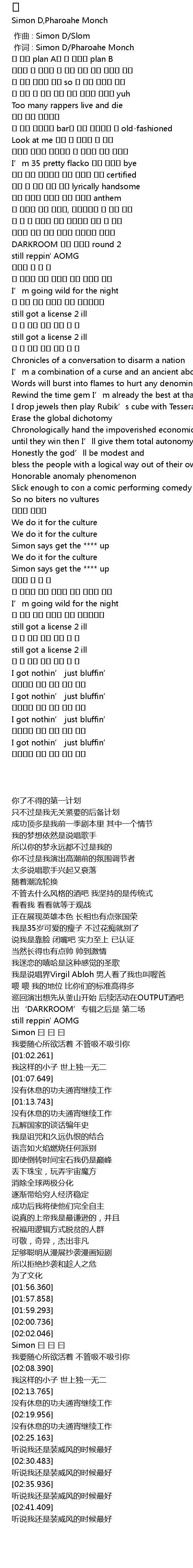 | [00:01.000] | zuò cí : Simon D Pharoahe Monch |