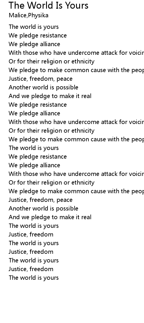 | [01:23.75] | We pledge to make common cause with the people of the world |