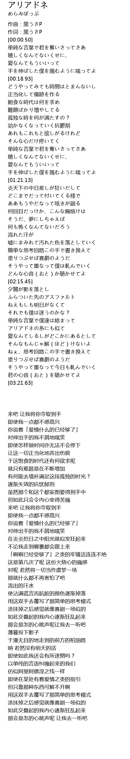 | [03:11.01] | そうやって重なって今日も軋んでいく |