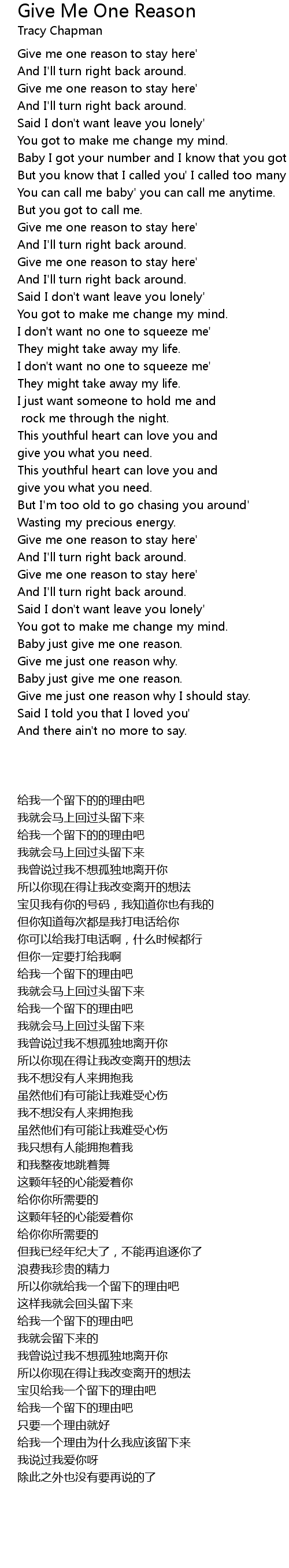 Give Me One Reason Lyrics