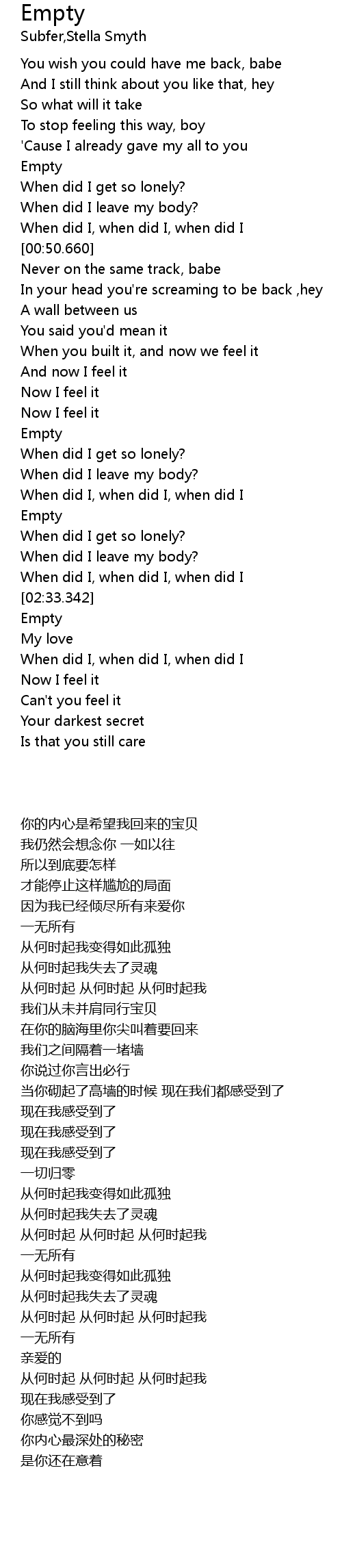 | [02:22.419] | When did I get so lonely? |