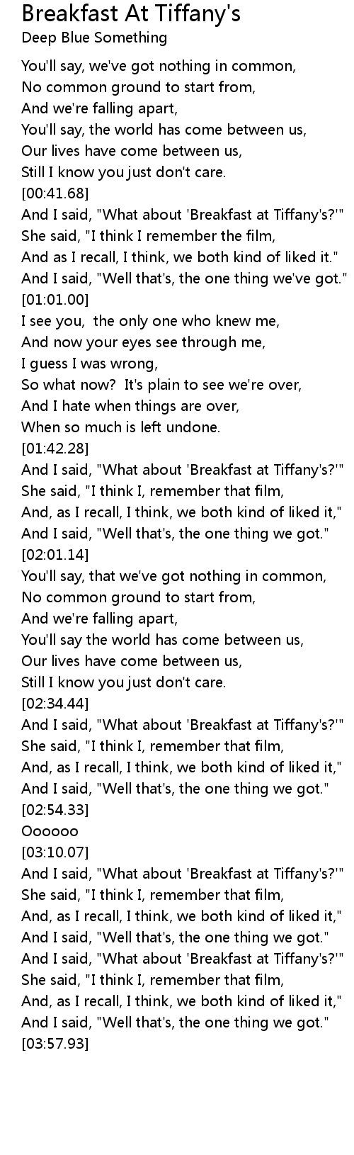 And I said, "What about 'Breakfast at Tiffany's?'" |