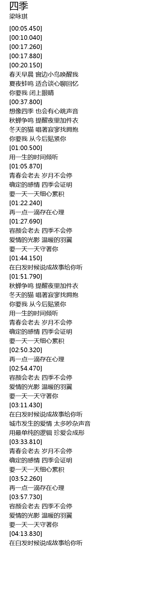 | [03:58.760] | 容颜会老去 四季不会停 |