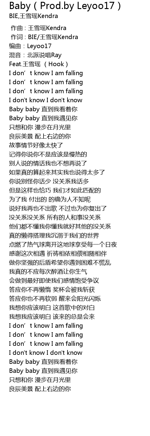 | [00:01.000] | 作词 : BIE/王雪瑶Kendra |