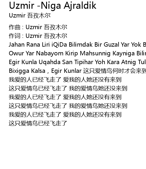 | zuò qǔ : Uzmir wú zī mù ěr | |