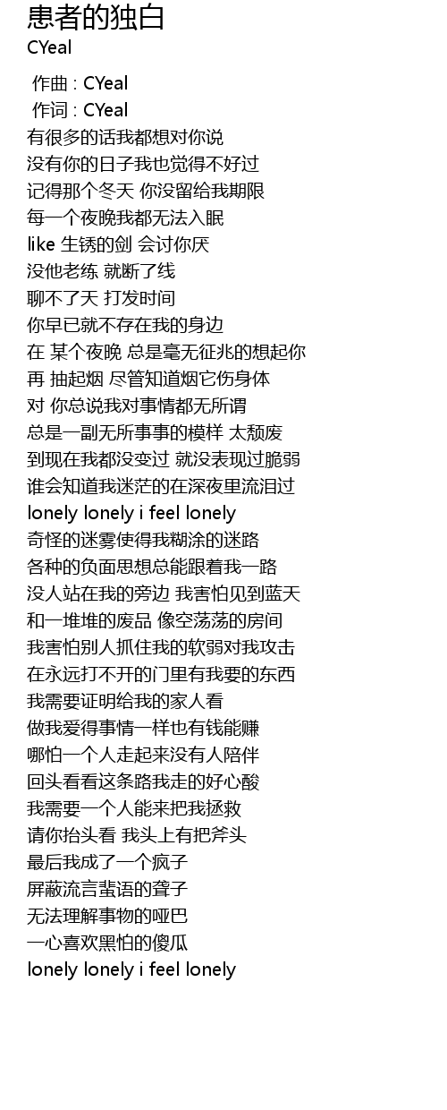 | [01:01.881] | 没人站在我的旁边 我害怕见到蓝天 |