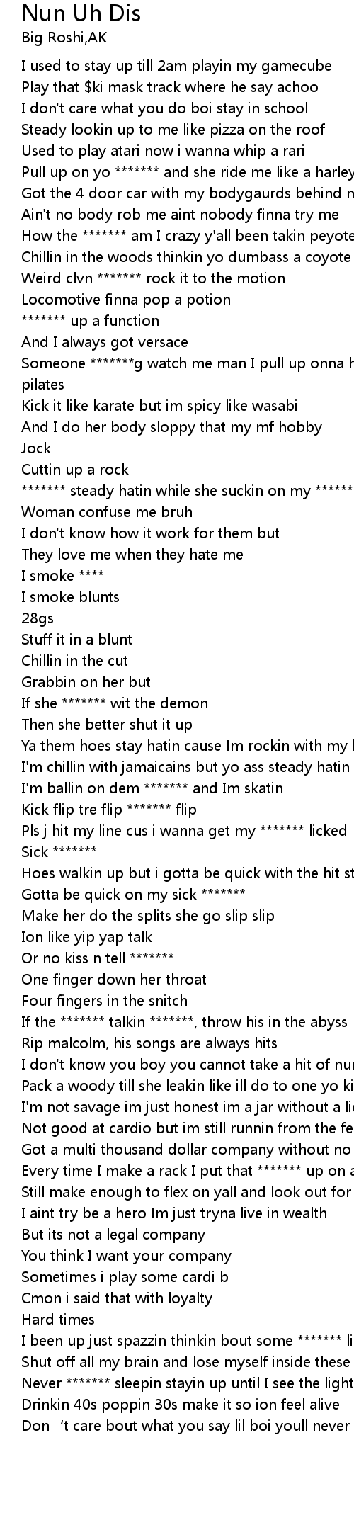 | [00:49.190] | ******* steady hatin while she suckin on my ******* |