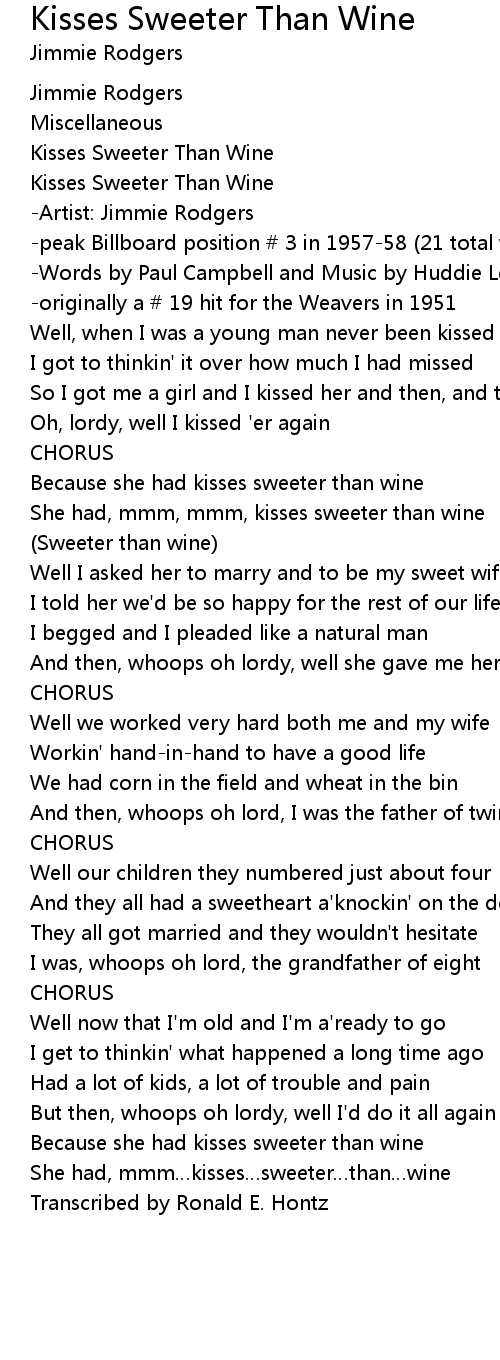 | She had, mmm, mmm, kisses sweeter than wine | |