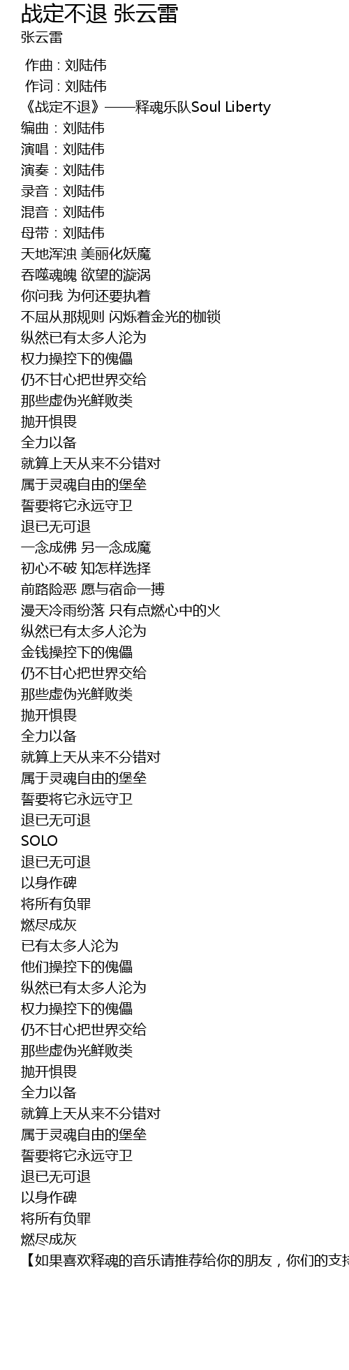 | [00:00.536] | 《战定不退》——释魂乐队Soul Liberty |