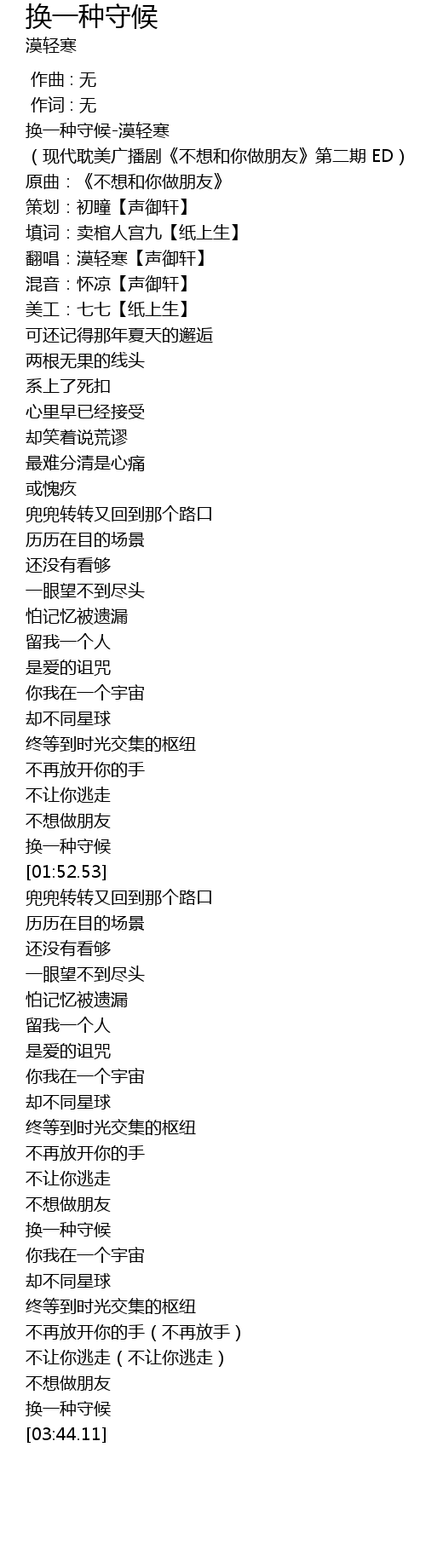 | [03:36.17] | bù xiǎng zuò péng yǒu |