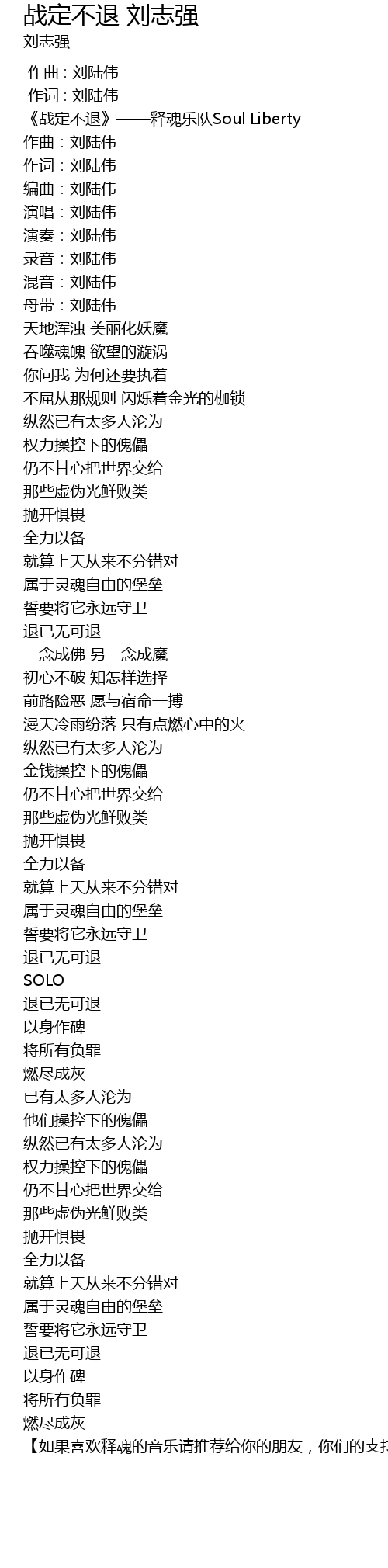 | [00:00.536] | 《战定不退》——释魂乐队Soul Liberty |