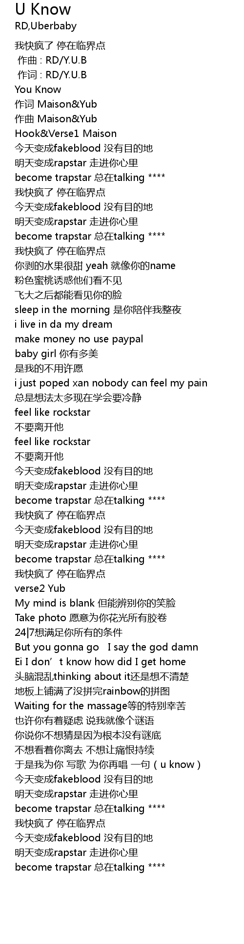 | [00:00.000] | zuò qǔ : RD Y. U. B |