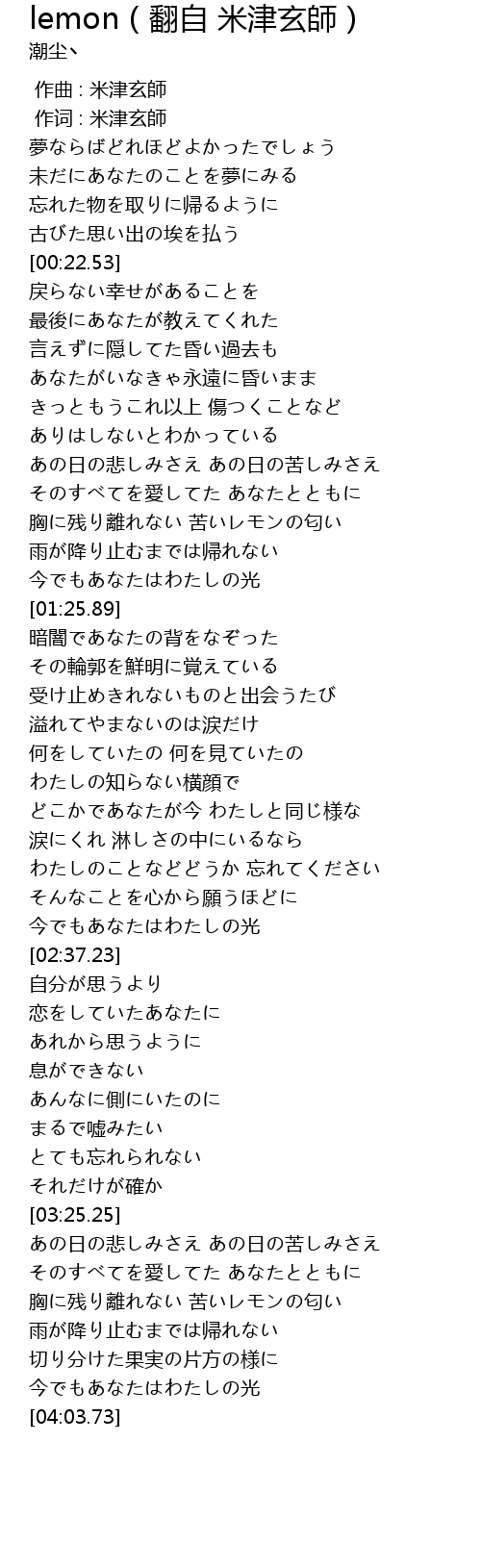 | [03:40.56] | 胸に残り離れない 苦いレモンの匂い |
