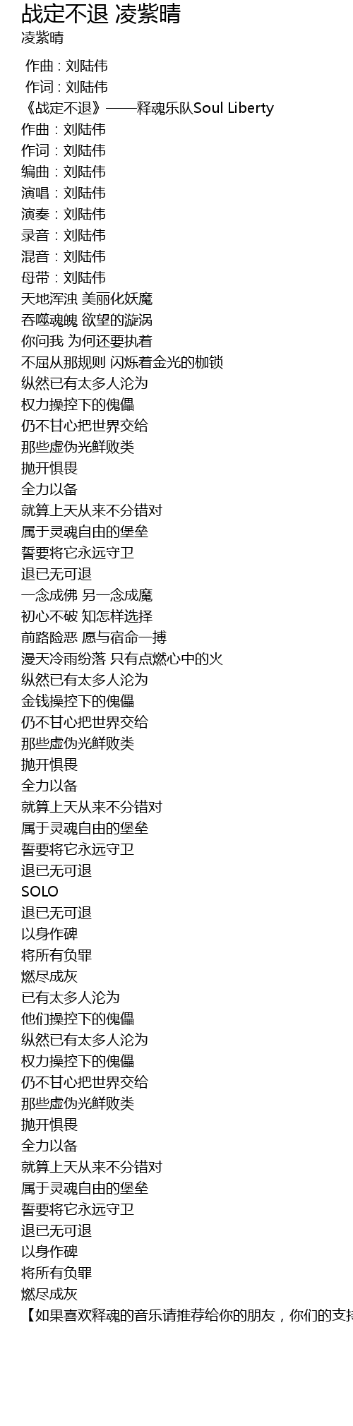 | [00:00.536] | 《战定不退》——释魂乐队Soul Liberty |