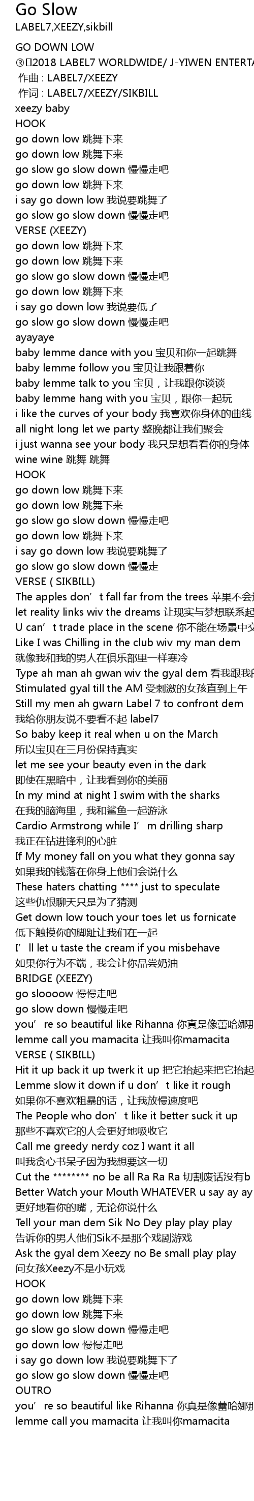 | [01:14.69] | go down low tiào wǔ xià lái |
