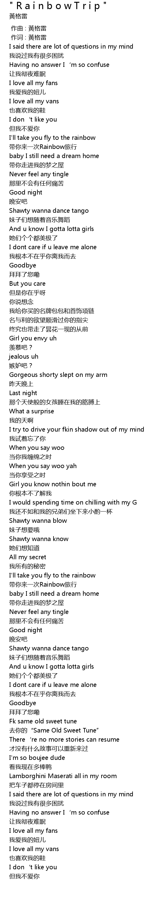 | [01:42.456] | 带你来一次Rainbow旅行 |